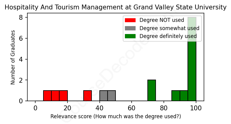 First, some facts. Of the Hospitality And Tourism Management graduates from Grand Valley State University we've analyzed , here's how many have used (or NOT used) their degree in their career: