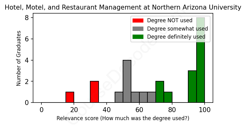 First, some facts. Of the Hotel, Motel, and Restaurant Management graduates from Northern Arizona University we've analyzed , here's how many have used (or NOT used) their degree in their career: