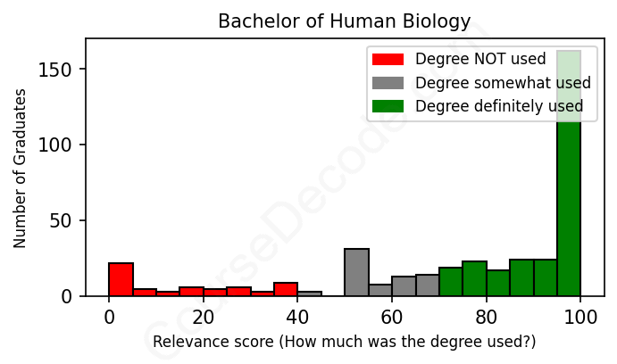First, some facts. Of the Human Biology graduates we've analyzed , here's how many have used (or NOT used) their degree in their career: