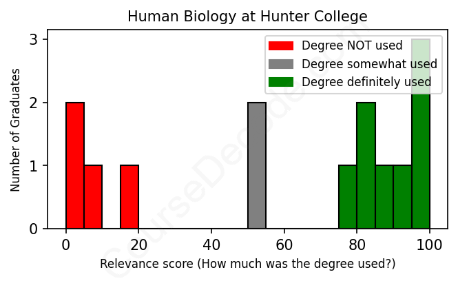 First, some facts. Of the Human Biology graduates from Hunter College we've analyzed , here's how many have used (or NOT used) their degree in their career: