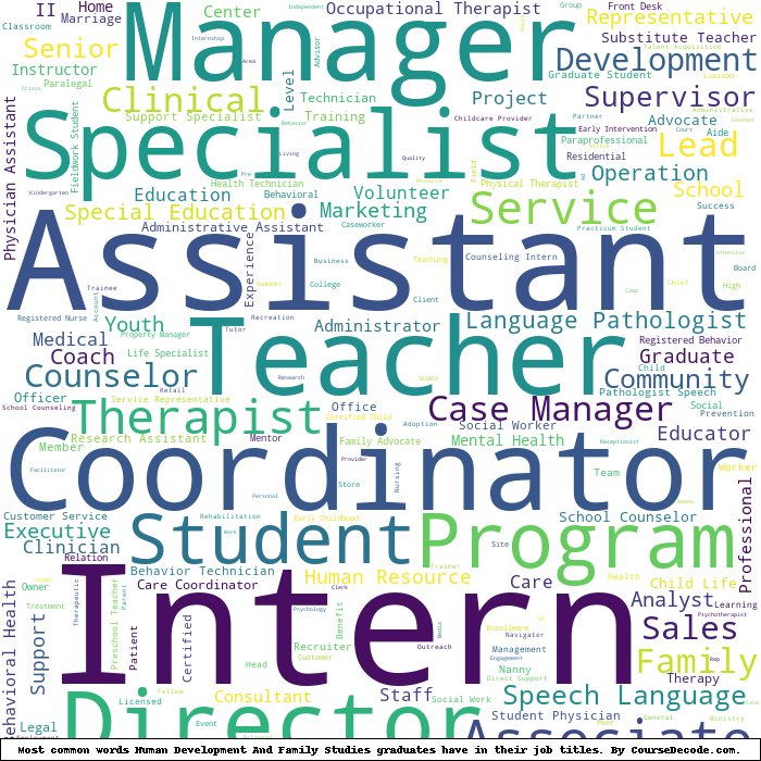 Here is a visual representation of the most common words in job titles for Human Development And Family Studies graduates: