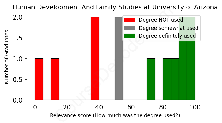 First, some facts. Of the Human Development And Family Studies graduates from University of Arizona we've analyzed , here's how many have used (or NOT used) their degree in their career: