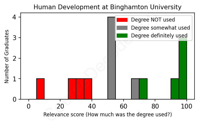 First, some facts. Of the Human Development graduates from Binghamton University we've analyzed , here's how many have used (or NOT used) their degree in their career: