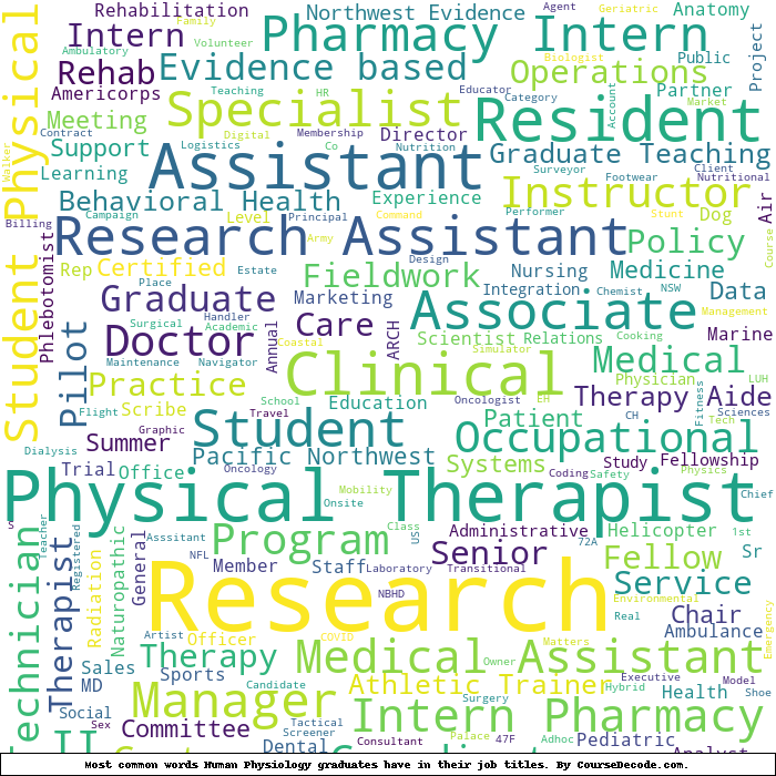 Here is a visual representation of the most common words in job titles for Human Physiology graduates: