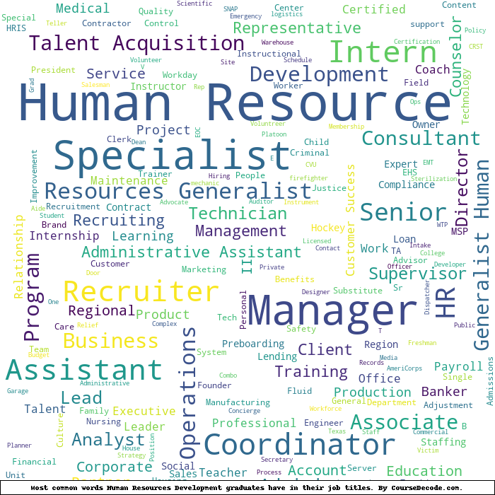 Here is a visual representation of the most common words in job titles for Human Resources Development graduates: