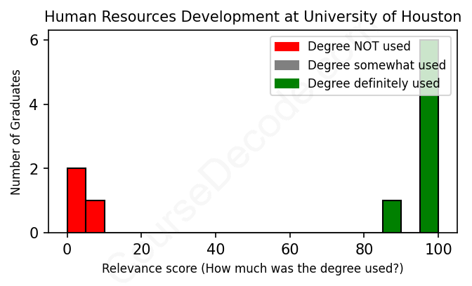First, some facts. Of the Human Resources Development graduates from University of Houston we've analyzed , here's how many have used (or NOT used) their degree in their career:
