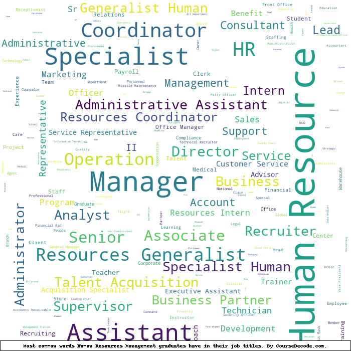 Here is a visual representation of the most common words in job titles for Human Resources Management graduates: