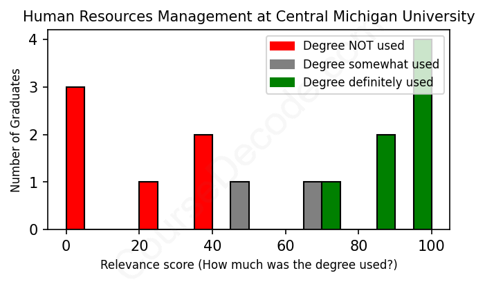 First, some facts. Of the Human Resources Management graduates from Central Michigan University we've analyzed , here's how many have used (or NOT used) their degree in their career: