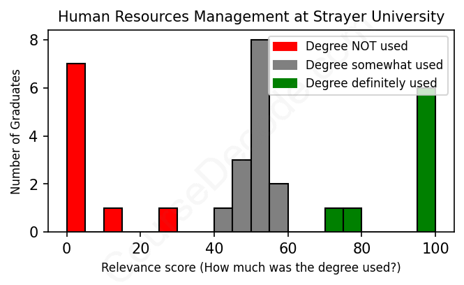 First, some facts. Of the Human Resources Management graduates from Strayer University we've analyzed , here's how many have used (or NOT used) their degree in their career:
