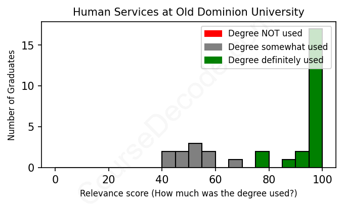 First, some facts. Of the Human Services graduates from Old Dominion University we've analyzed , here's how many have used (or NOT used) their degree in their career: