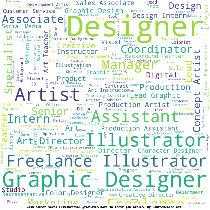 Here is a visual representation of the most common words in job titles for Illustration graduates: