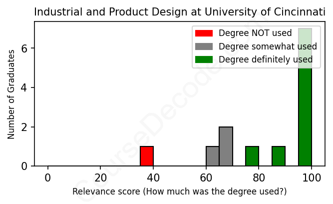 First, some facts. Of the Industrial and Product Design graduates from University of Cincinnati we've analyzed , here's how many have used (or NOT used) their degree in their career: