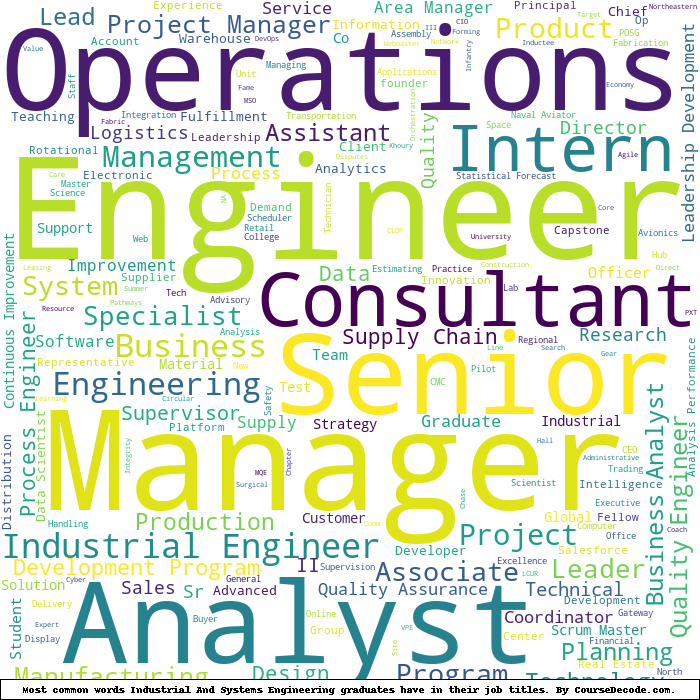 Here is a visual representation of the most common words in job titles for Industrial And Systems Engineering graduates: