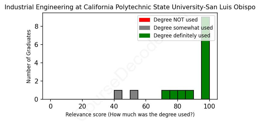 First, some facts. Of the Industrial Engineering graduates from California Polytechnic State University-San Luis Obispo we've analyzed , here's how many have used (or NOT used) their degree in their career: