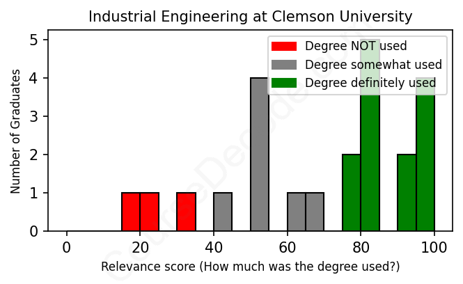 First, some facts. Of the Industrial Engineering graduates from Clemson University we've analyzed , here's how many have used (or NOT used) their degree in their career: