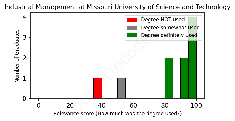 First, some facts. Of the Industrial Management graduates from Missouri University of Science and Technology we've analyzed , here's how many have used (or NOT used) their degree in their career:
