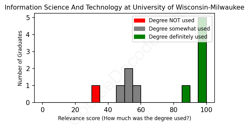 First, some facts. Of the Information Science And Technology graduates from University of Wisconsin-Milwaukee we've analyzed , here's how many have used (or NOT used) their degree in their career: