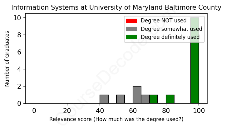 First, some facts. Of the Information Systems graduates from University of Maryland Baltimore County we've analyzed , here's how many have used (or NOT used) their degree in their career: