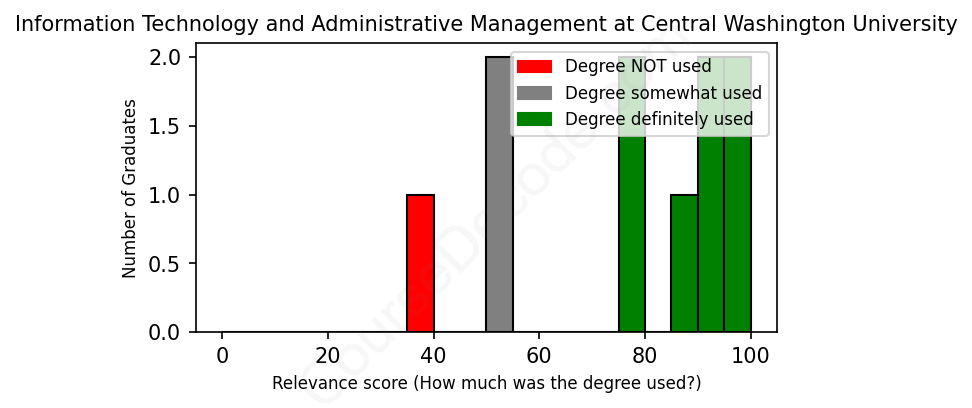 First, some facts. Of the Information Technology and Administrative Management graduates from Central Washington University we've analyzed , here's how many have used (or NOT used) their degree in their career:
