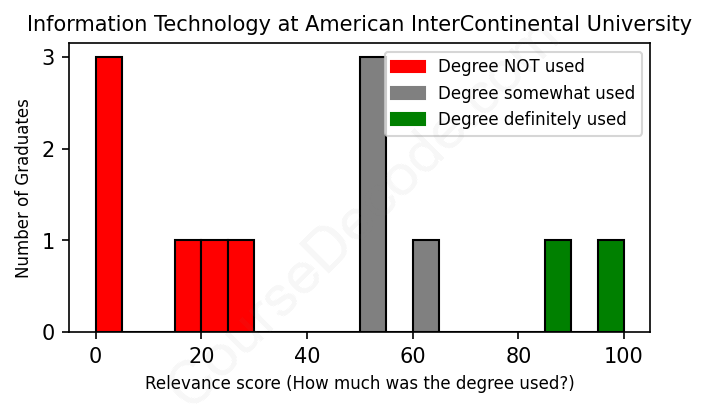 First, some facts. Of the Information Technology graduates from American InterContinental University we've analyzed , here's how many have used (or NOT used) their degree in their career: