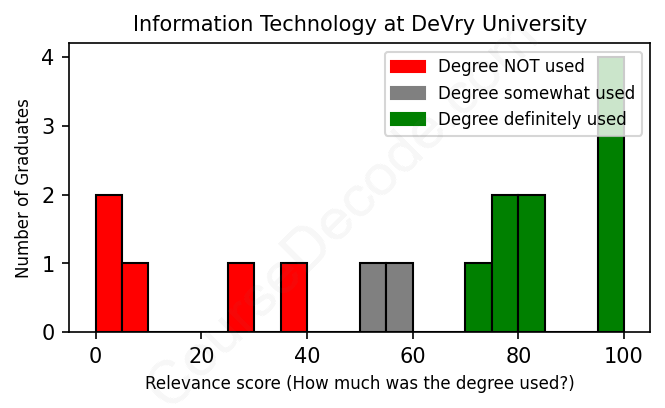 First, some facts. Of the Information Technology graduates from DeVry University we've analyzed , here's how many have used (or NOT used) their degree in their career: