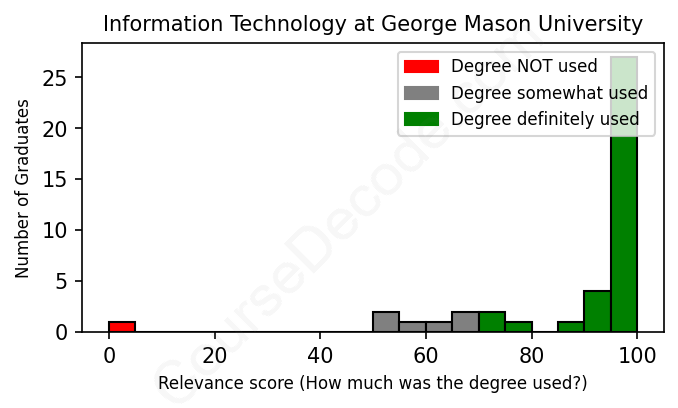 First, some facts. Of the Information Technology graduates from George Mason University we've analyzed , here's how many have used (or NOT used) their degree in their career: