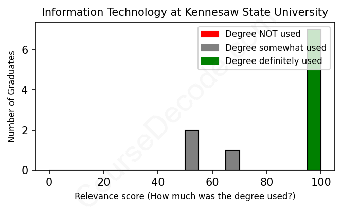 First, some facts. Of the Information Technology graduates from Kennesaw State University we've analyzed , here's how many have used (or NOT used) their degree in their career: