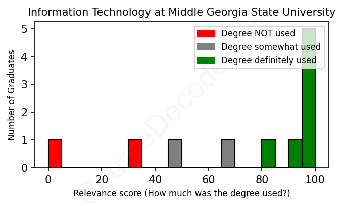 First, some facts. Of the Information Technology graduates from Middle Georgia State University we've analyzed , here's how many have used (or NOT used) their degree in their career:
