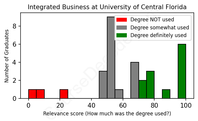 First, some facts. Of the Integrated Business graduates from University of Central Florida we've analyzed , here's how many have used (or NOT used) their degree in their career: