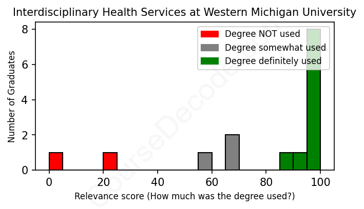 First, some facts. Of the Interdisciplinary Health Services graduates from Western Michigan University we've analyzed , here's how many have used (or NOT used) their degree in their career: