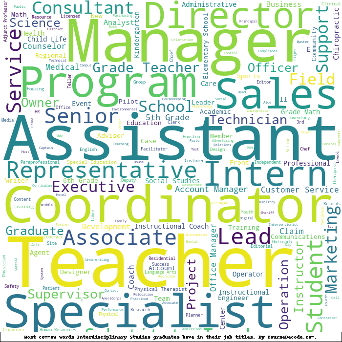 Here is a visual representation of the most common words in job titles for Interdisciplinary Studies graduates: