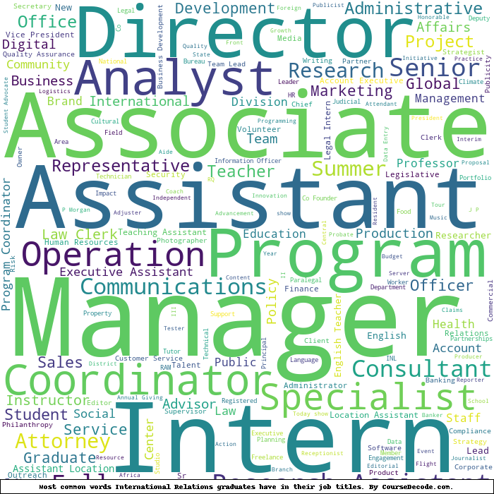 Here is a visual representation of the most common words in job titles for International Relations graduates: