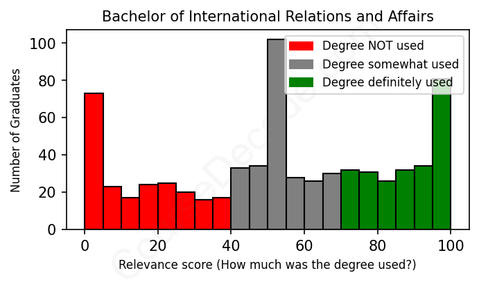 First, some facts. Of the International Relations and Affairs graduates we've analyzed , here's how many have used (or NOT used) their degree in their career: