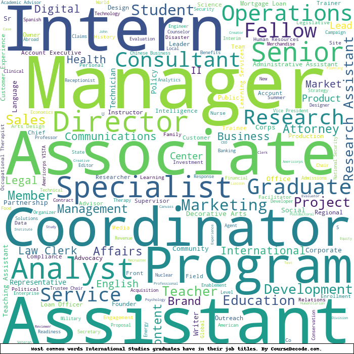 Here is a visual representation of the most common words in job titles for International Studies graduates: