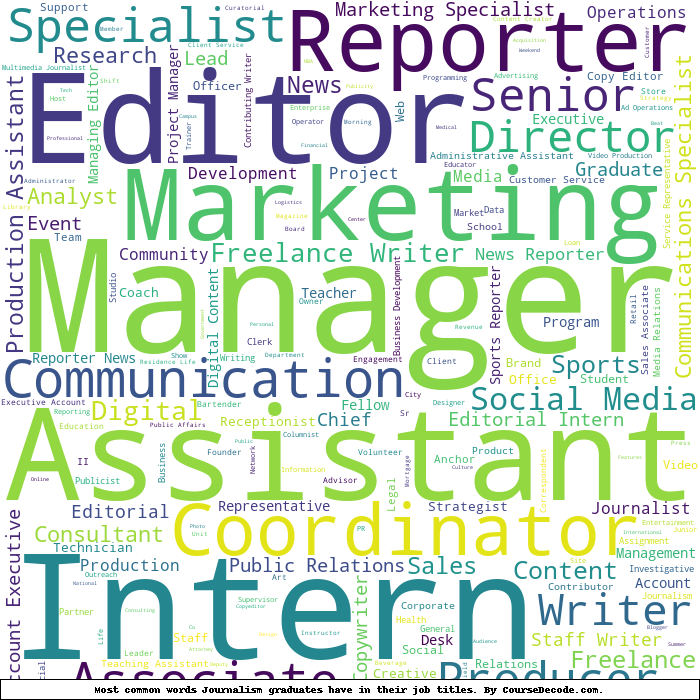 Here is a visual representation of the most common words in job titles for Journalism graduates: