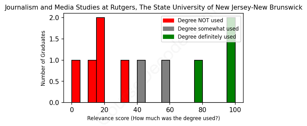 First, some facts. Of the Journalism and Media Studies graduates from Rutgers, The State University of New Jersey-New Brunswick we've analyzed , here's how many have used (or NOT used) their degree in their career: