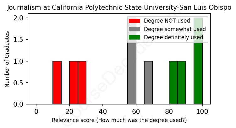 First, some facts. Of the Journalism graduates from California Polytechnic State University-San Luis Obispo we've analyzed , here's how many have used (or NOT used) their degree in their career: