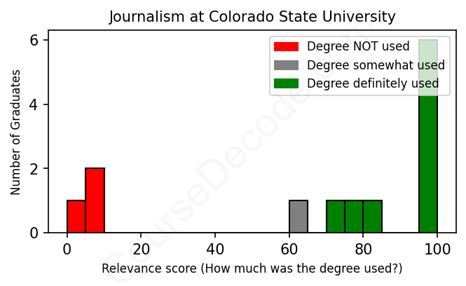 First, some facts. Of the Journalism graduates from Colorado State University we've analyzed , here's how many have used (or NOT used) their degree in their career: