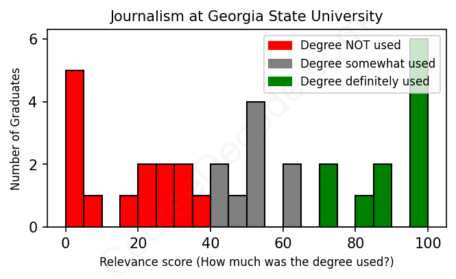 First, some facts. Of the Journalism graduates from Georgia State University we've analyzed , here's how many have used (or NOT used) their degree in their career: