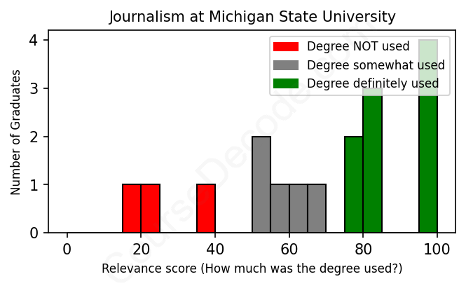 First, some facts. Of the Journalism graduates from Michigan State University we've analyzed , here's how many have used (or NOT used) their degree in their career: