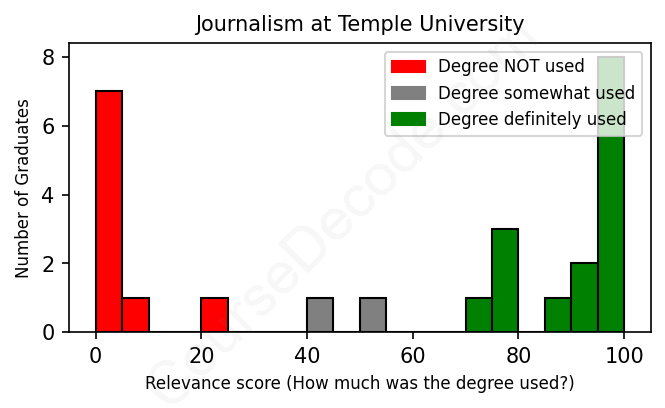 First, some facts. Of the Journalism graduates from Temple University we've analyzed , here's how many have used (or NOT used) their degree in their career: