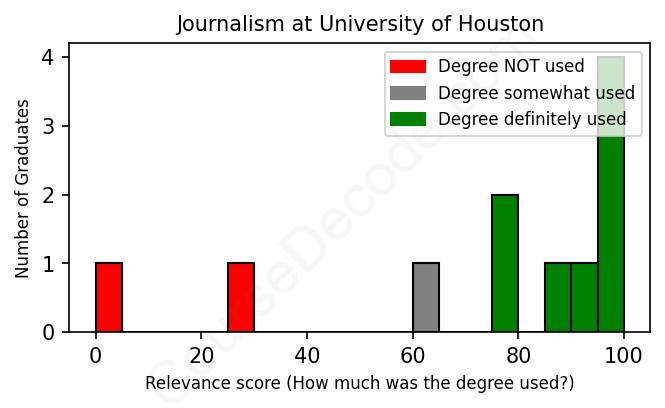 First, some facts. Of the Journalism graduates from University of Houston we've analyzed , here's how many have used (or NOT used) their degree in their career: