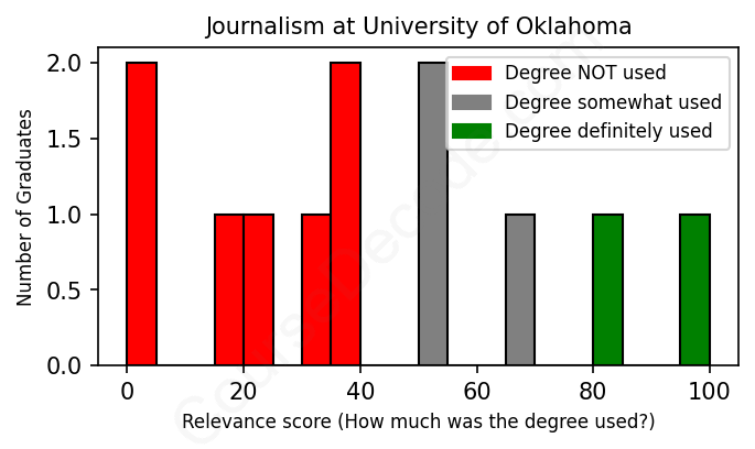 First, some facts. Of the Journalism graduates from University of Oklahoma we've analyzed , here's how many have used (or NOT used) their degree in their career: