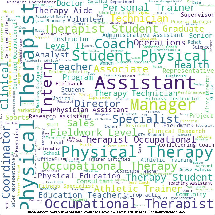 Here is a visual representation of the most common words in job titles for Kinesiology graduates: