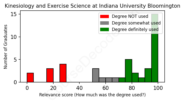 First, some facts. Of the Kinesiology and Exercise Science graduates from Indiana University Bloomington we've analyzed , here's how many have used (or NOT used) their degree in their career: