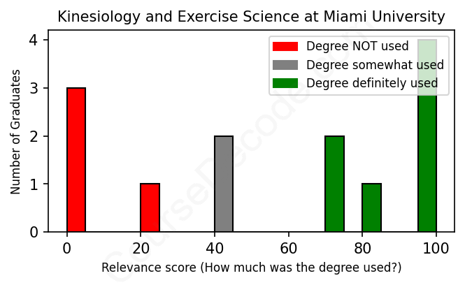 First, some facts. Of the Kinesiology and Exercise Science graduates from Miami University we've analyzed , here's how many have used (or NOT used) their degree in their career: