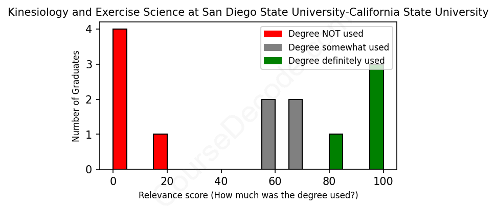 First, some facts. Of the Kinesiology and Exercise Science graduates from San Diego State University-California State University we've analyzed , here's how many have used (or NOT used) their degree in their career: