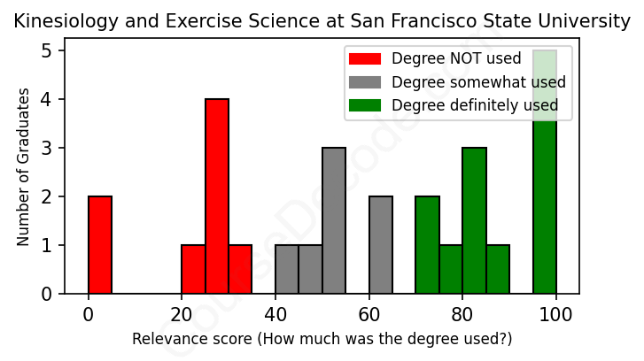 First, some facts. Of the Kinesiology and Exercise Science graduates from San Francisco State University we've analyzed , here's how many have used (or NOT used) their degree in their career: