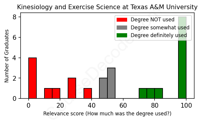 First, some facts. Of the Kinesiology and Exercise Science graduates from Texas A&M University we've analyzed , here's how many have used (or NOT used) their degree in their career: