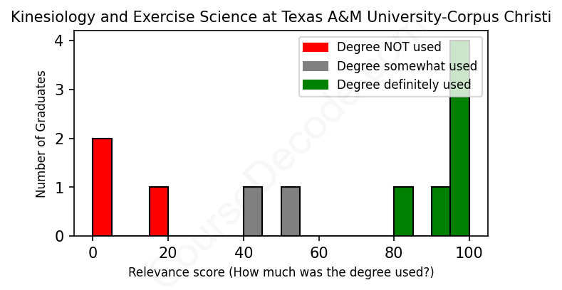 First, some facts. Of the Kinesiology and Exercise Science graduates from Texas A&M University-Corpus Christi we've analyzed , here's how many have used (or NOT used) their degree in their career: